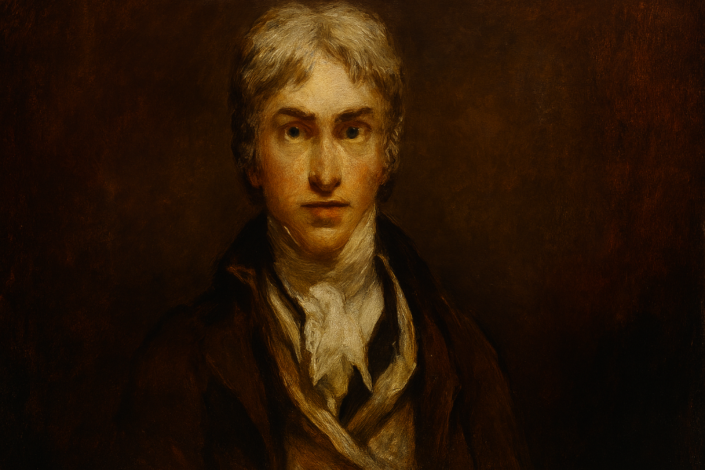Turner m’a toujours fasciné et souvent ému aux larmes. C’est particulièrement le cas pour cette toile, découverte il y a quelques années au Louvre, où la lumière semble pulser au-delà de la matière même. Je suis saisi par cette façon qu’a le peintre de dissoudre les contours, de faire vibrer l’atmosphère jusqu’à ce que le paysage devienne émotion pure, soupir de la nature traduit en couleurs évanescentes. Mais qui est donc cet artiste étonnant dont Edmond de Goncourt écrivait en 1890 : « Il y a parmi ces toiles un Turner : un lac bleuâtre éthéré, aux contours indéfinis, un lac lointain, sous un coup de jour électrique, tout au bout de terrains fauves. Nom de Dieu ! Ça vous fait mépriser l’originalité de Monet et des autres originaux de son espèce. » ?